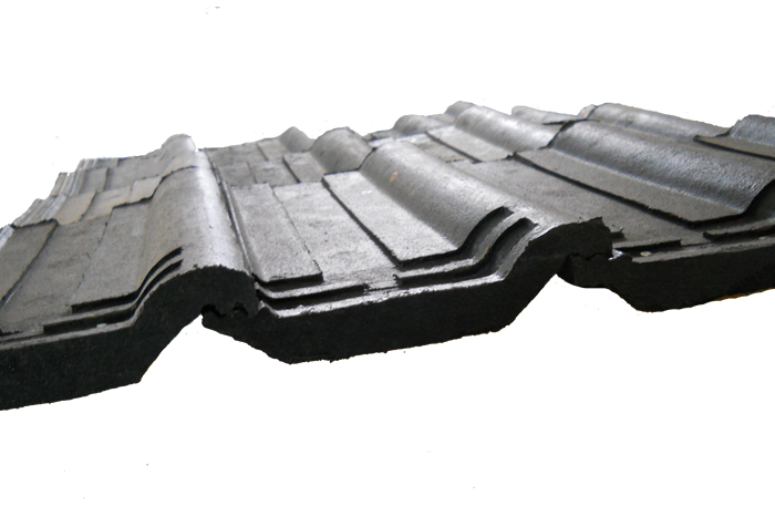 Se aplica en cubiertas inclinadas, sobre estructura de madera. Está elaborado íntegramente con materiales reciclados procedentes de desechos industriales plásticos y de neumáticos fuera de uso. El procedimiento de elaboración consiste en el triturado de los materiales, la extrusión de los mismos, y el moldeado en una prensa. Esta teja es más resistente a la flexión, a la heladicidad y al granizo que las tejas tradicionales como la cerámica o la de hormigón y además es más liviana.
