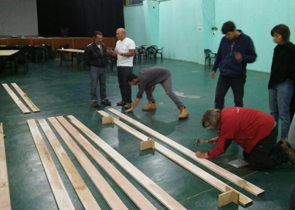 En el taller, representantes del equipo de CEVE-CONICET-AVE presentaron diferentes tecnologías generadas a los largo de los 50 años del Centro Experimental de la Vivienda Económica y desarrollaron una instancia práctica con algunas de ellas, como el Sistema UMA, el sistema BENO y el plegado.