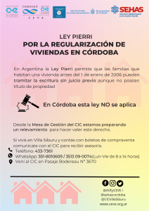 La iniciativa exige la regularización habitacional de familias cordobesas que no poseen título de propiedad de sus viviendas