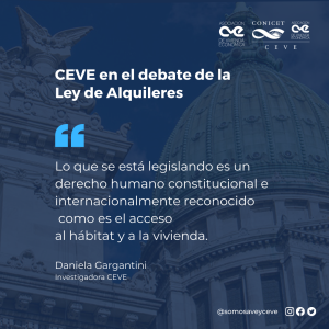 El área de investigación de Gestión Integral del Hábitat de AVE-CEVE-CONICET participa activamente en espacios que defienden los derechos de inquilinas e inquilinos ante el tratamiento de la modificación de la ley nacional de alquileres.