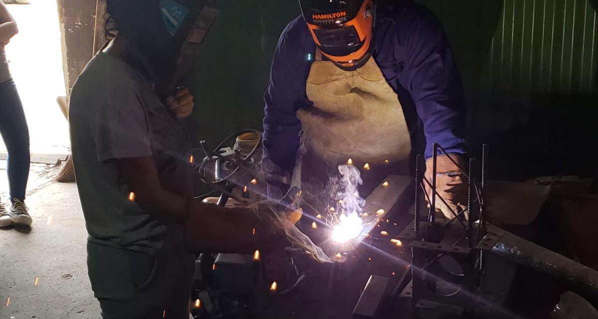 En esta oportunidad compartieron un taller de soldadura para dar respuesta a la demanda que requiere la producción de componentes estructurales del Sistema constructivo UMA, como columnas, vigas y cabezales. Dichos elementos serán producidos por un equipo conformado cien por ciento por mujeres.